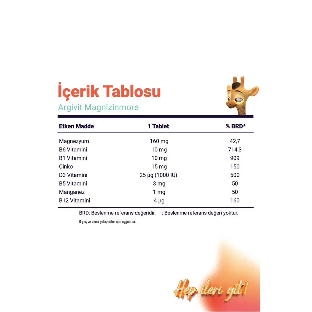 EtiketlerArgivit Magnizinmore Magnezyum Çinko ve Vitamin D İçeren Takviye Edici Gıda 60 Tablet