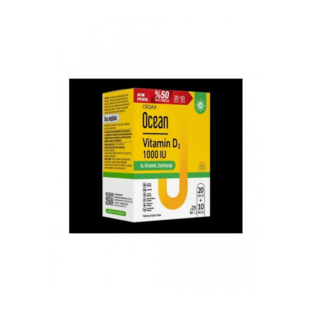 EtiketlerOcean Vitamin D3 Sprey 1000 IU 20 ml + 10 ml - %50 Daha Fazla
